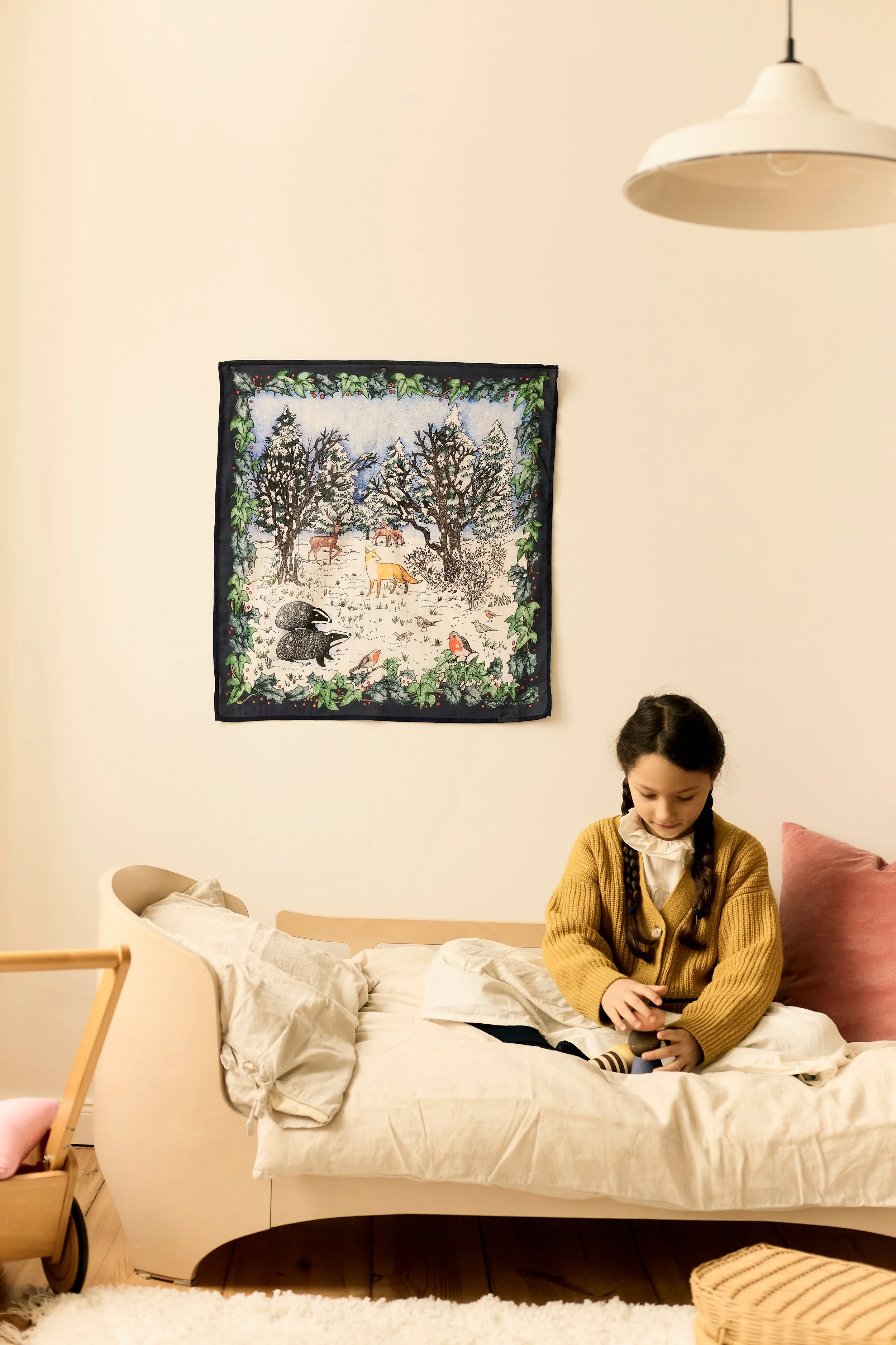 When the play is over, it settles gently as part of the room: draped on a wall, framed as a gentle decoration, or spread across a play corner, bringing a quiet sense of calm to your child’s space.